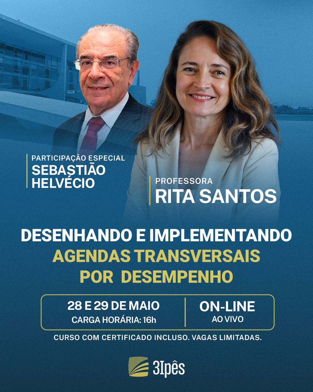 Curso On-line, nos dias 28 e 29 de maio de 2026, com a renomada Dra. Rita Santos, coordenadora acadêmica do Instituto 3Ipês e referência nacional em políticas públicas e orçamentação estratégica.